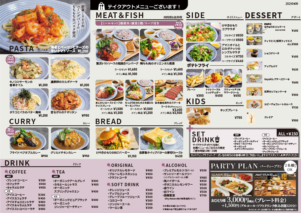 Keyaki no Mori CAFE & ARTSの料理をふんだんに使用した2種類のパーティープランです。